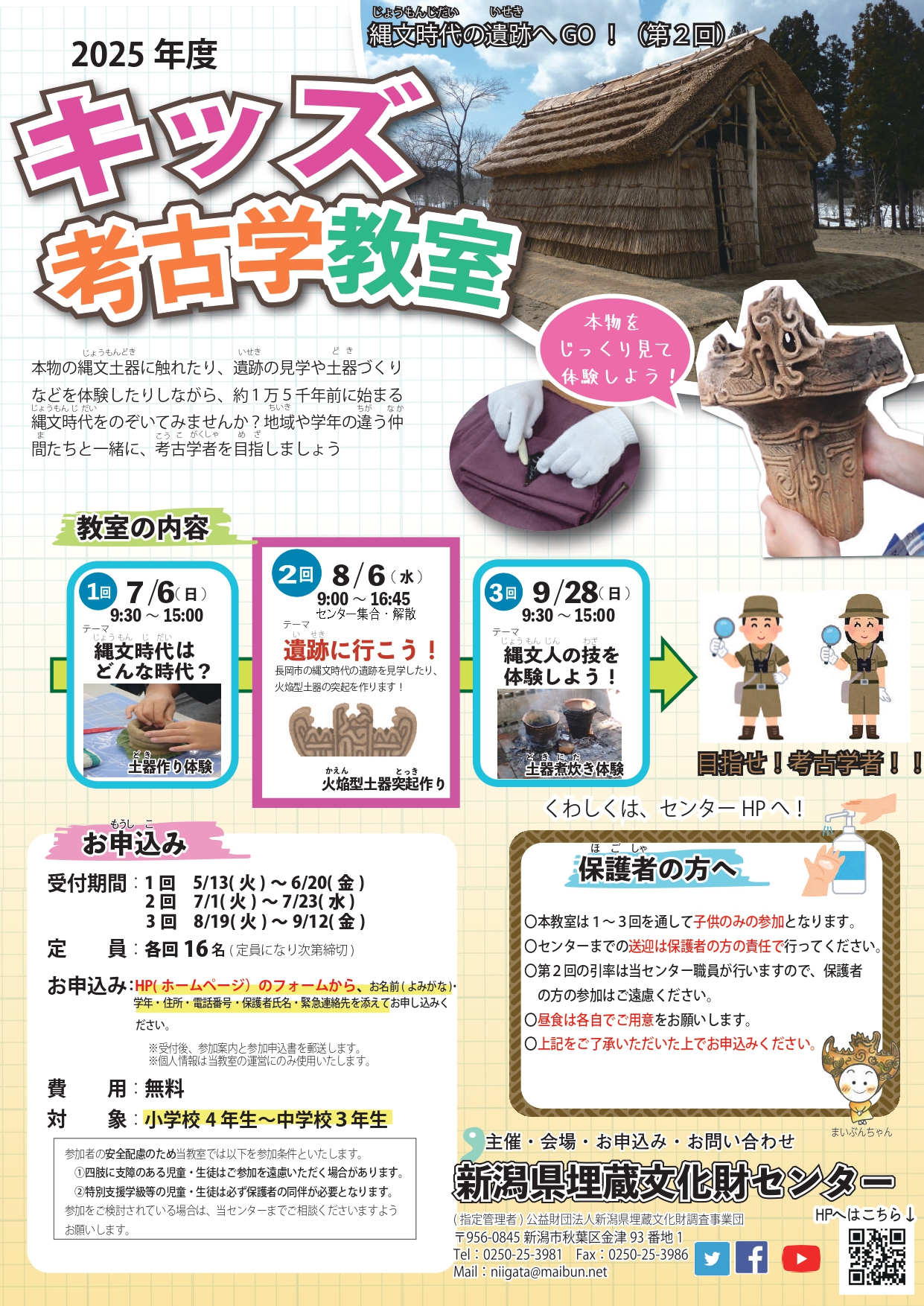 ◎第2回 8月6日(水)9:00~16:45「遺跡に行こう!―遺跡訪問と火焔型土器突起制作体験―」
